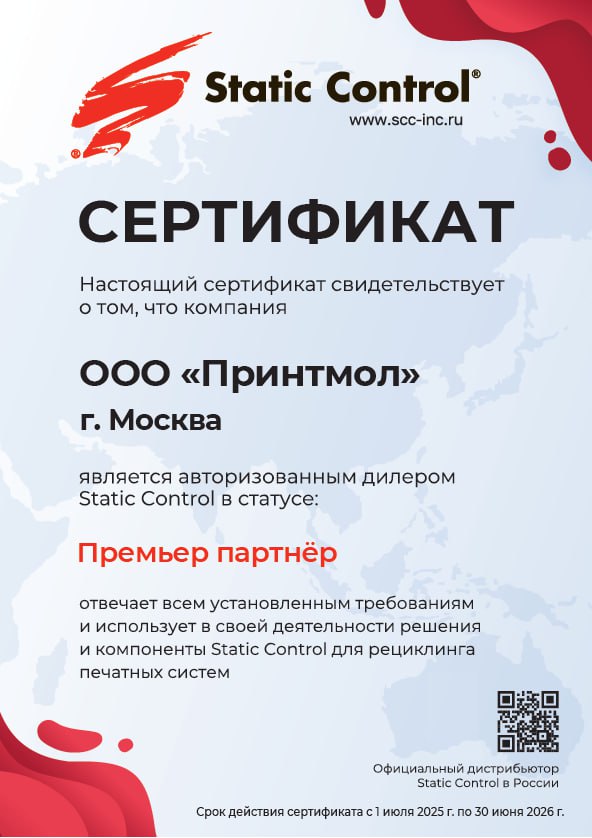 Pritmall.ru является авторизованным дилером (статус Премьер Партнер) всемирно известного производителя совместимых картриджей, тонеров и компонентов для восстановления и ремонта картриджей – компании Static Control.